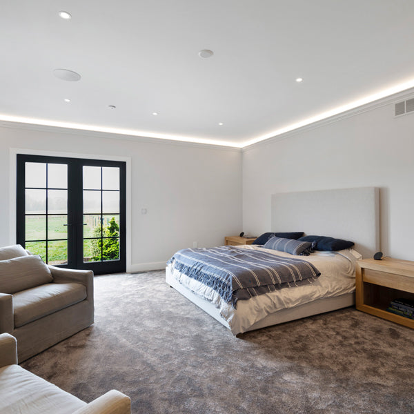 In each room, lights know how and when to adjust according to detection of motion, sound from presence sensors and even natural lighting levels.